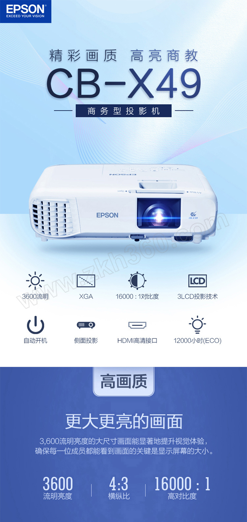 3600lm HDMI高清接口 3LCD 不含安装