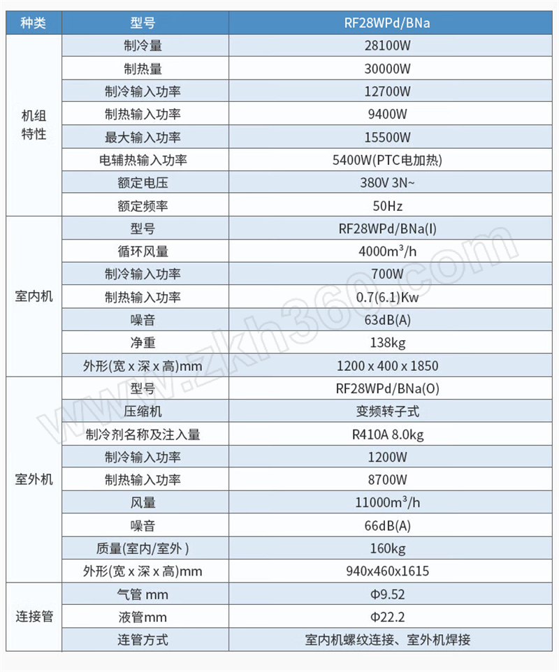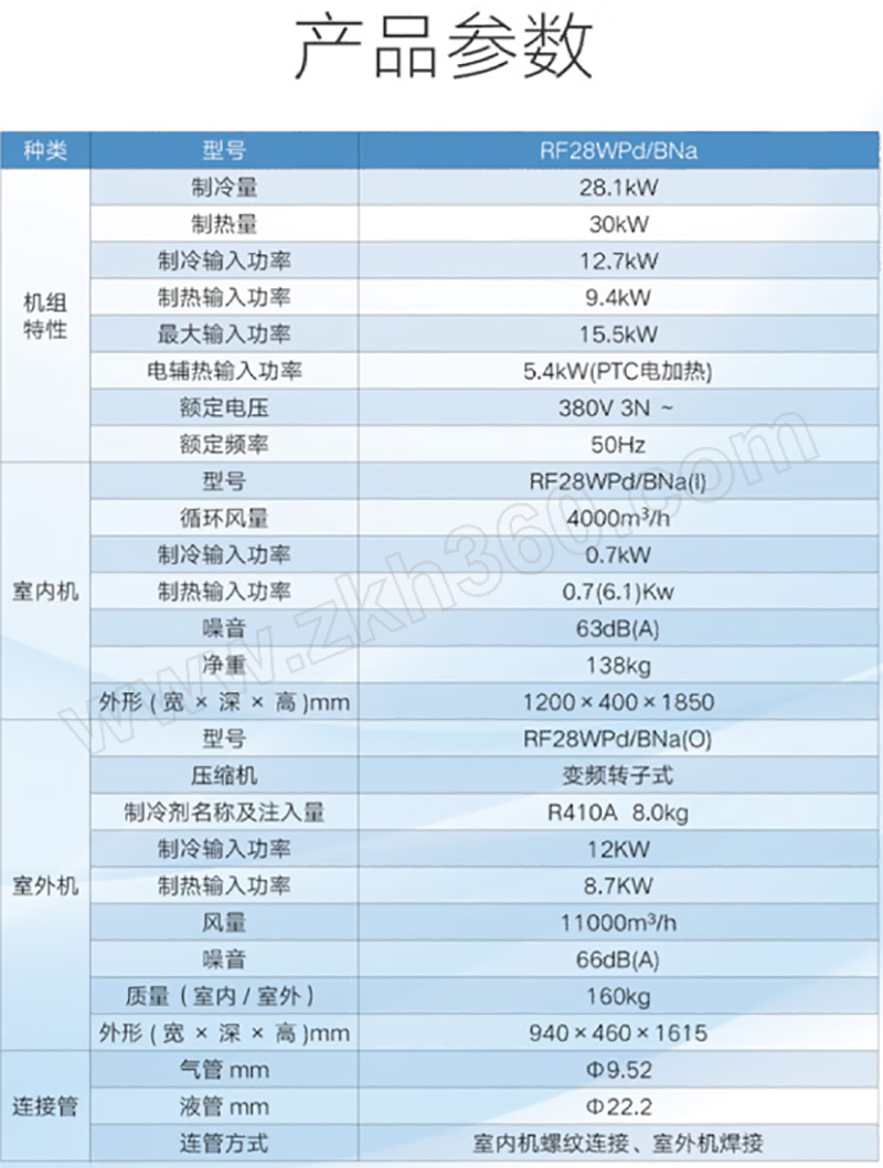 AC380V 二级能效 变频冷暖 含安装人工费 不含铜管费用 其他辅材按标准收费
