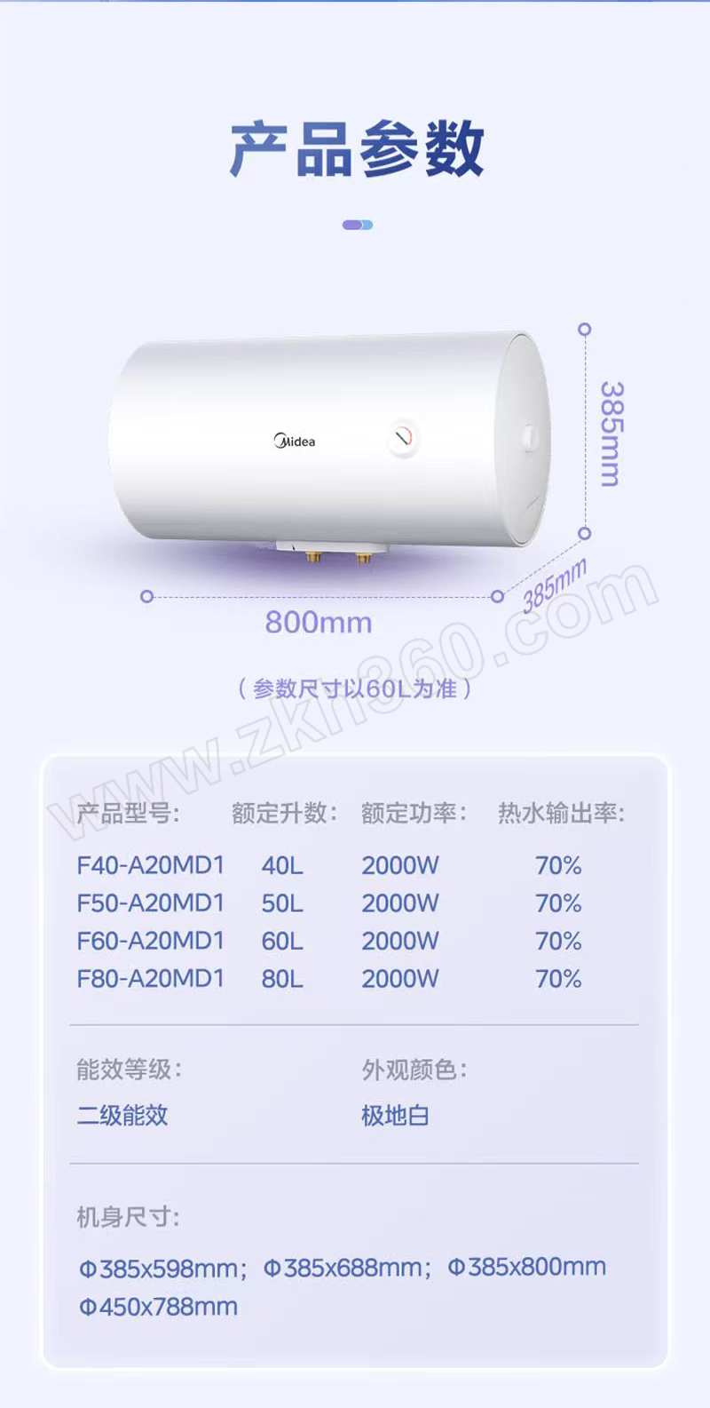 60L 2KW 旋钮控制 二级能效 含基础安装人工 超出部分按标准收费
