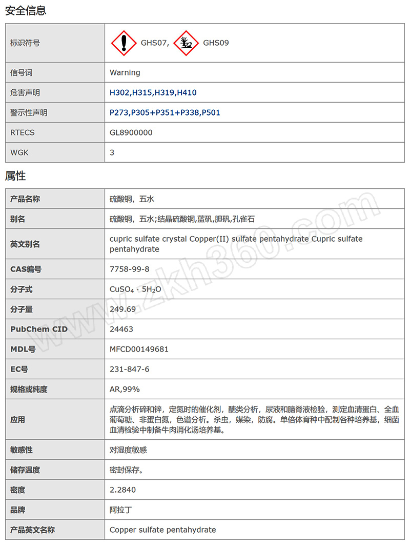 CAS号7758-99-8规格:AR 99%