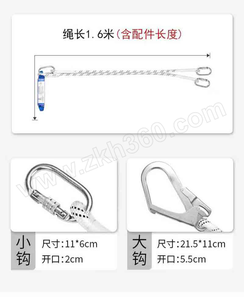 橘色 1.6m双小钩缓冲安全绳
