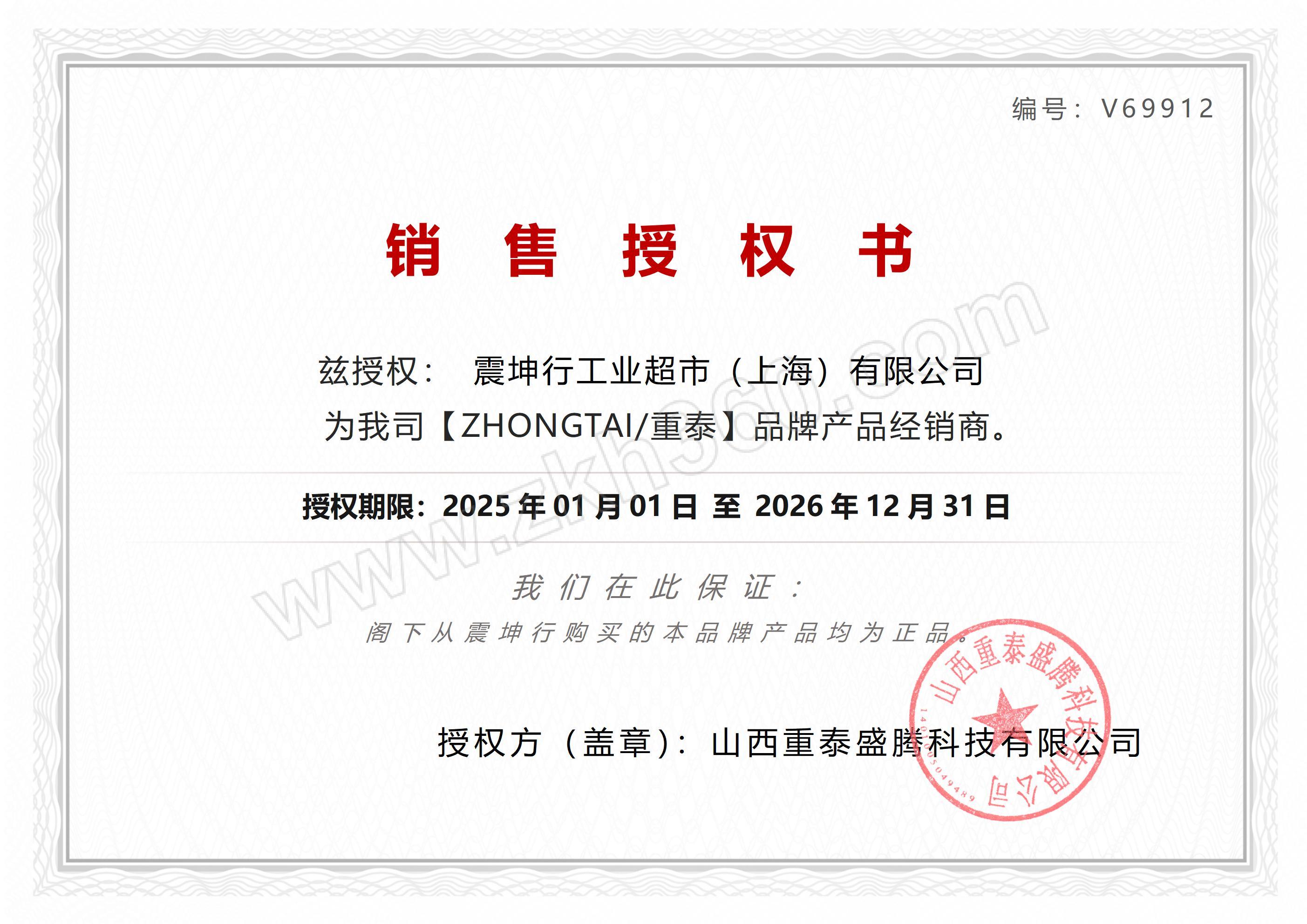 产品品牌: ZHONGTAI/重泰