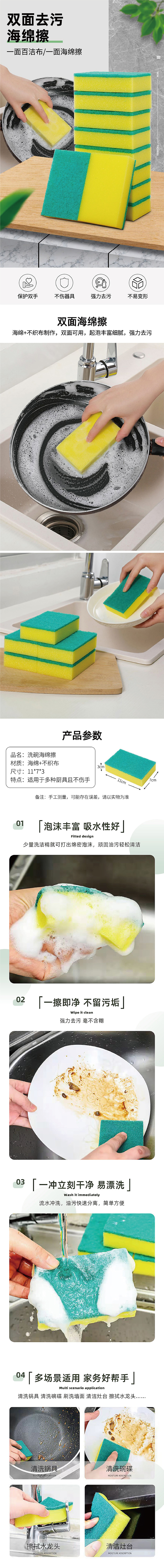 百洁布(洗碗棉)绿色尺寸:10*7*3(透明袋独立包装)