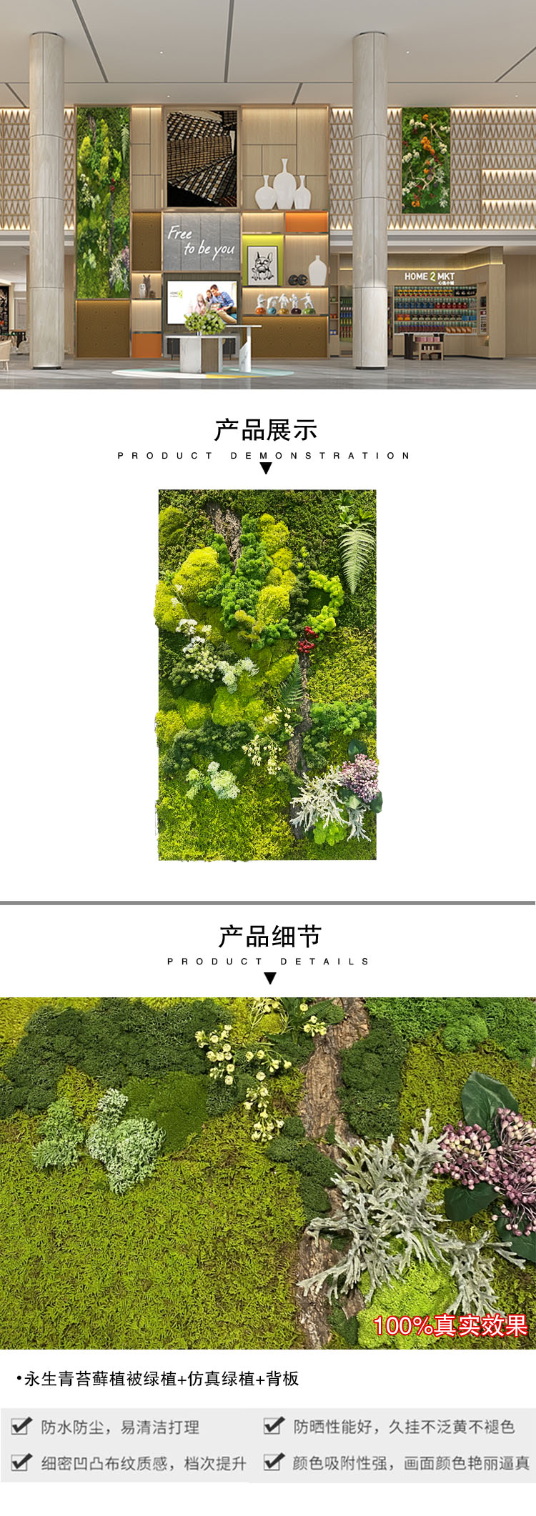 (国产)永生青苔藓植被绿植+仿真绿植+背板;达到阻燃标准